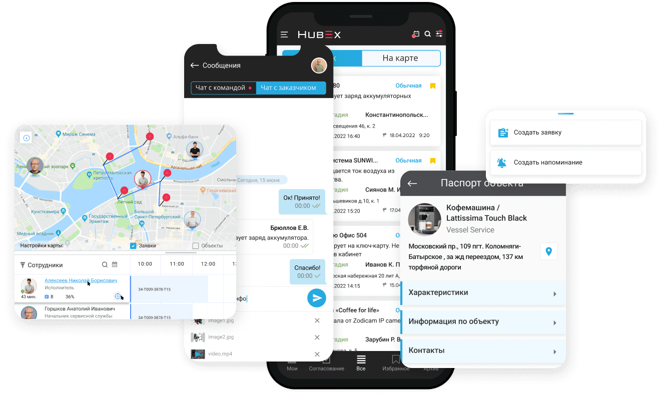 Планируйте рабочий день исполнителей оптимально с помощью инструментов электронной диспетчерской HubEx. Разгрузите диспетчеров, доверив распределение заявок работу. Выполняйте больше заказов и организуйте работу так, чтобы сотрудники эффективнее использовали свое рабочее время, а уровень сервиса для клиентов рос.